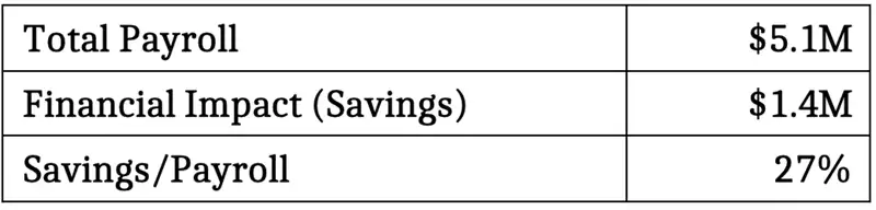 Impact relative to total company payroll
